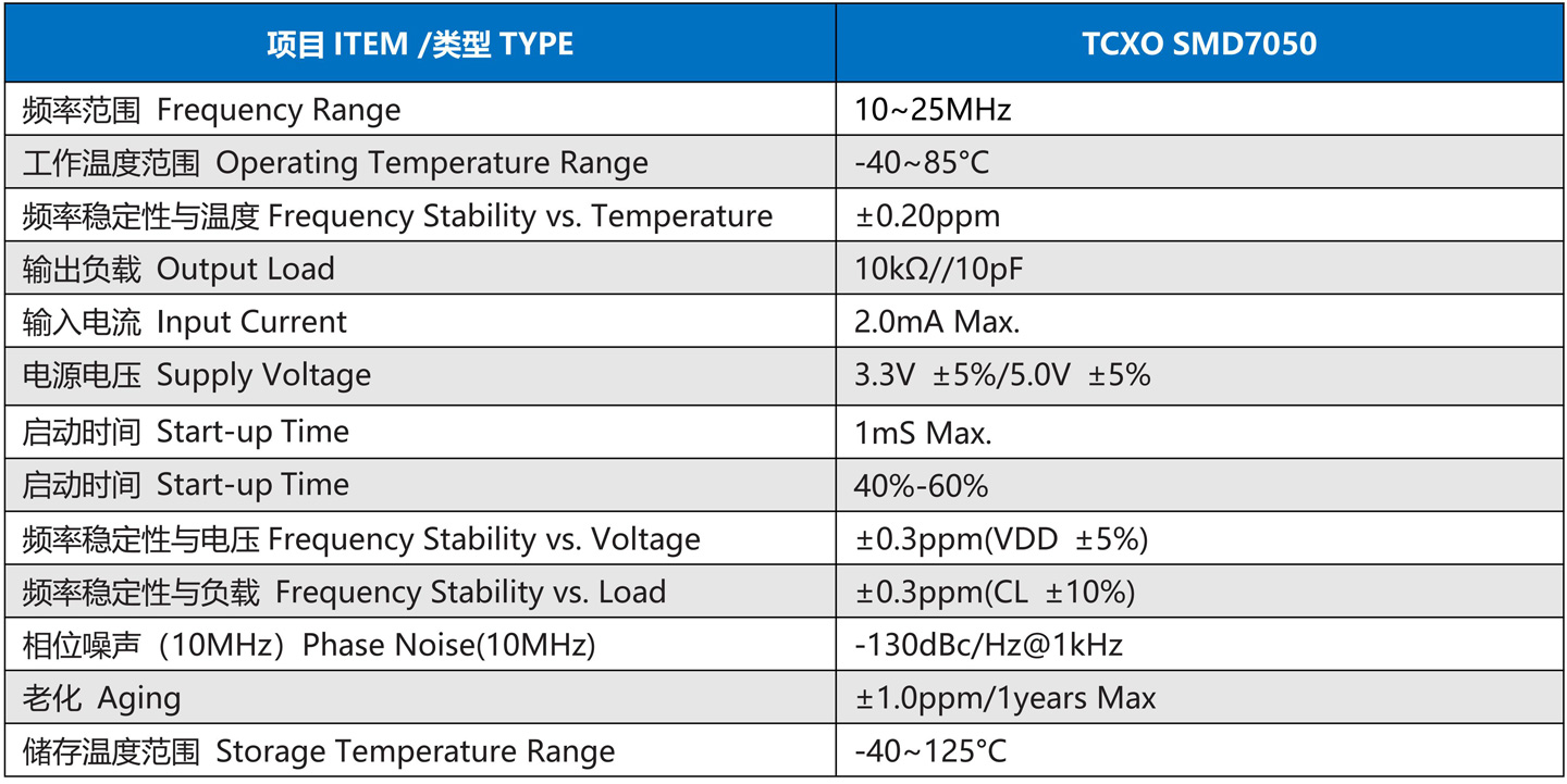 产品类型 PRODUCT TYPE:TCXO SMD7050