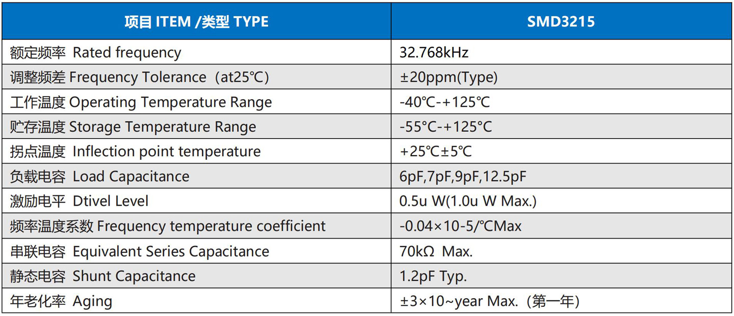 产品类型 PRODUCT TYPE :Crystal kHz Range SMD3.2*1.5